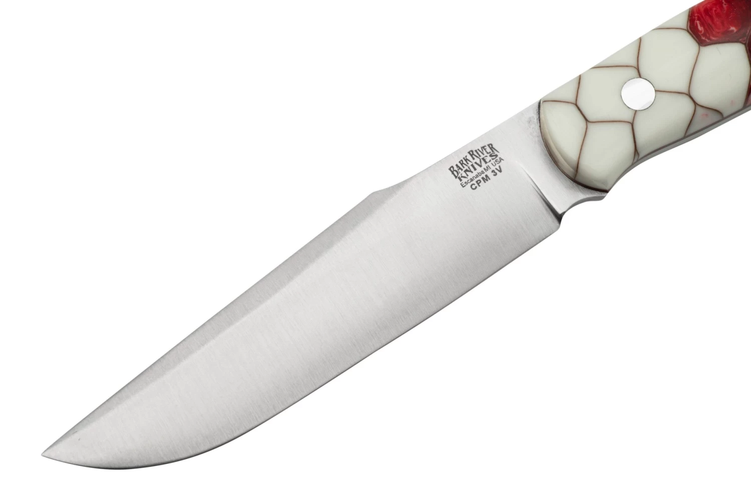 Bark River Ultra Lite Field Knife CPM 3V Ruby Frost Dragonscale Red Liner, Cuchillo Bushcraft