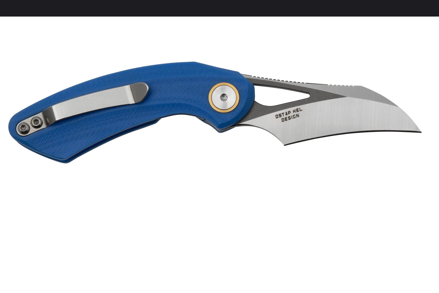 La Bestech Bihai BG53 D2 es una pequeña y compacta navaja EDC, diseñada por Ostap Hel. El cuchillo presenta una forma de hoja distintiva estilo Hawkbill. Es ideal para abrir paquetes o cortar cuerdas.