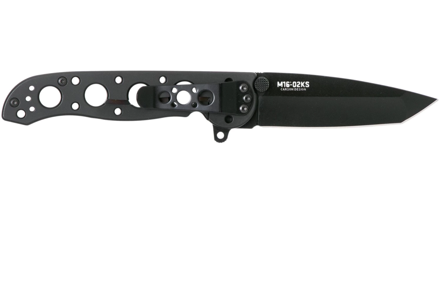 La CRKT M16 es probablemente el modelo más icónico de CRKT jamás diseñado. Este cuchillo, diseñado por Kit Carson, es un homenaje al fusil de asalto M16. Esta M16-02KS es una versión resistente del tanto. Se abre con una sola mano con el flipper o con el doble perno del pulgar y se bloquea con el cierre framelock. Como el flipper sirve de soporte para el dedo cuando se abre, es casi imposible resbalar y acabar en la hoja.