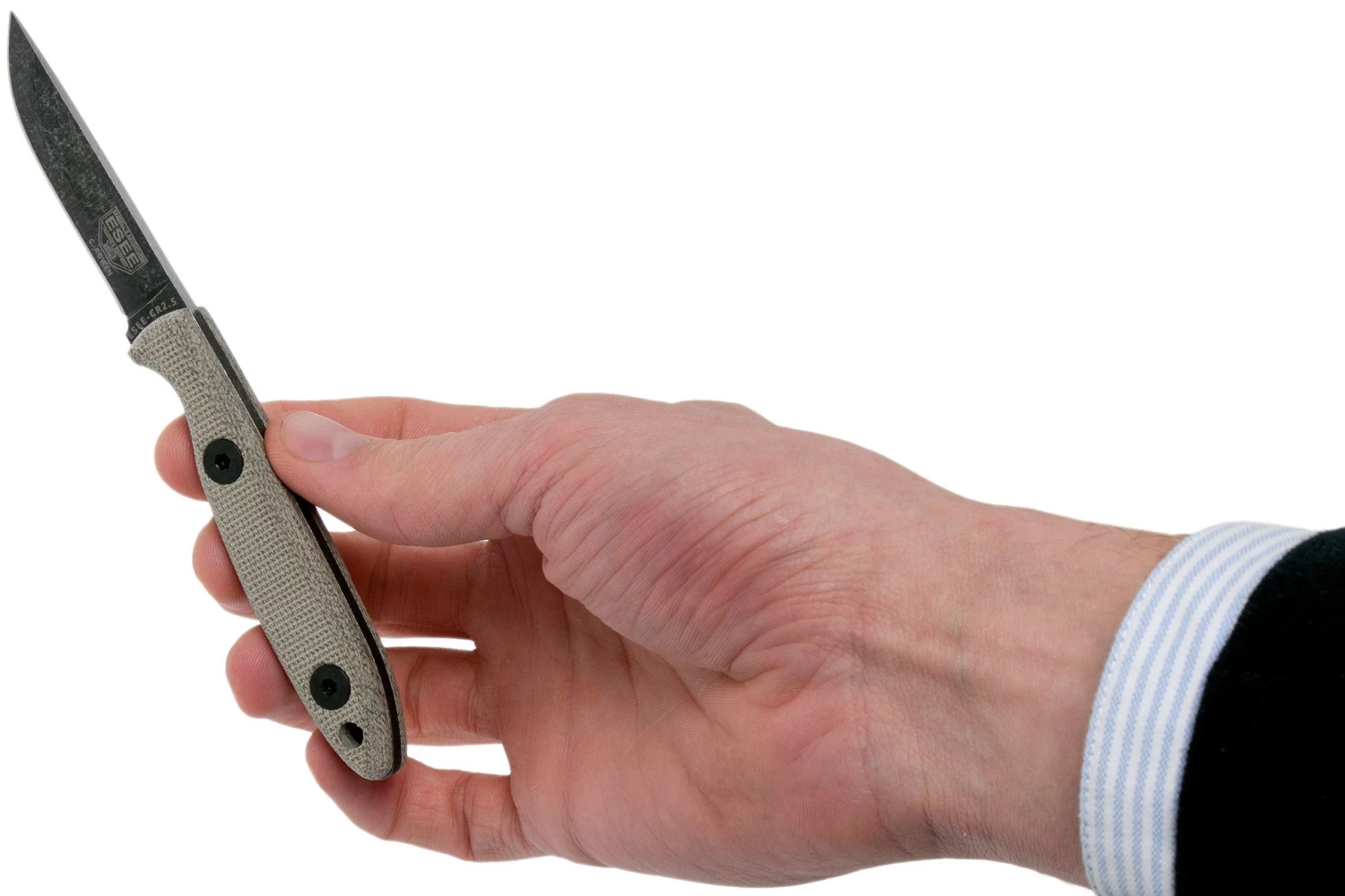 El cuchillo fijo Camp-Lore CR 2.5 es un cuchillo compacto y práctico diseñado por el estadounidense Cody Rowen. Pequeño, pero potente. La hoja de acero al carbono 1095 es muy afilada y conserva bien su filo. Este tipo de acero es fácil de afilar. Gracias al acabado fresco de color negro, las huellas de uso no son visibles.