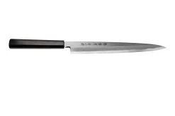 El Mujun S52-J deba 16,5 cm es un pesado cuchillo de cocina japonés. El Deba fue diseñado originalmente para filetear y preparar carne y pescado. La hoja es más gruesa que la de un cuchillo de cocina medio. Esto te permite aplicar fácilmente más presión para cortar fácilmente huesos pequeños, ligamentos y tendones sin dañar el filo del cuchillo. Este cuchillo está afilado por un lado mientras que el otro está ahuecado. Esto asegura que la carne o el pescado no se pegue y se caiga de la hoja con facilidad mientras estás cortando.
