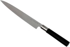 El Mujun S53-J deba 15 cm es un pesado cuchillo de cocina japonés. El Deba fue diseñado originalmente para filetear y preparar carne y pescado. La hoja es más gruesa que la de un cuchillo de cocina medio. Esto te permite aplicar fácilmente más presión para cortar fácilmente huesos pequeños, ligamentos y tendones sin dañar el filo del cuchillo. Este cuchillo está afilado por un lado mientras que el otro está ahuecado. Esto asegura que la carne o el pescado no se pegue y se desprenda bien de la hoja mientras se corta.