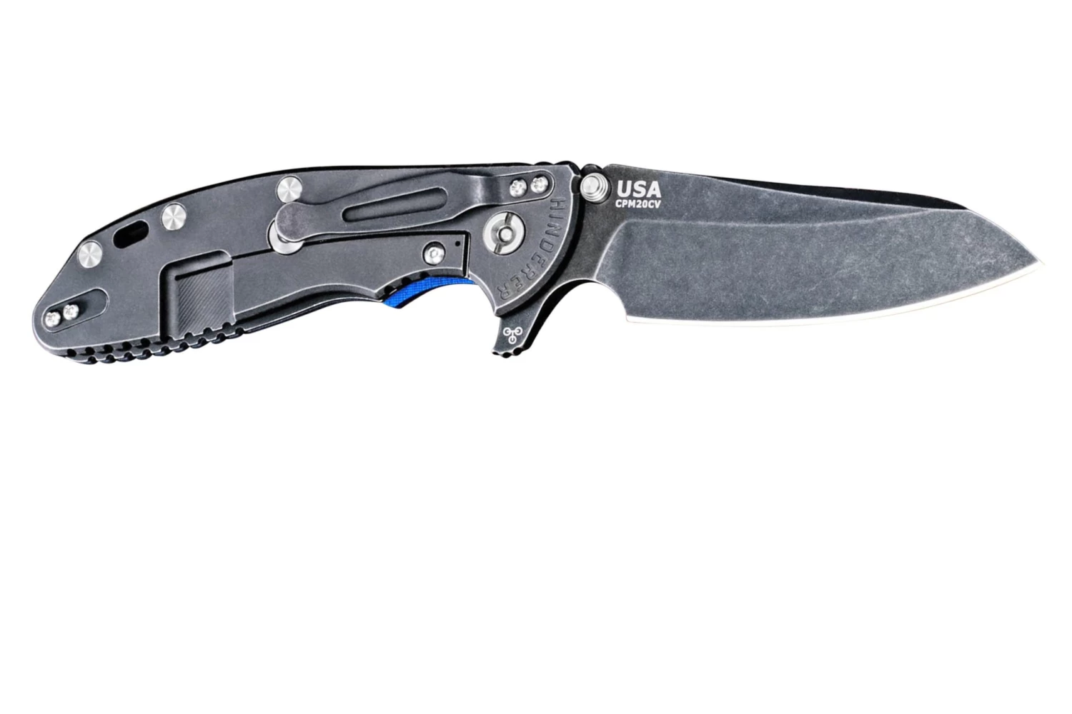 Rick Hinderer XM-24 4″ Gen6 Sheepfoot 20CV, Battle Black, Blue/Black G10 Navaja