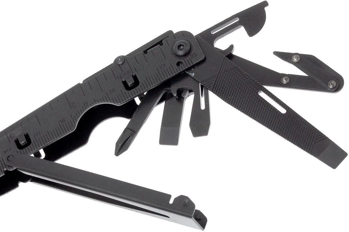 La SOG Powerlitre es una multiherramienta pequeña y compacta. Perfecta para llevar contigo a diario. Con al menos 18 funciones, esta multiherramienta es increíblemente versátil. Una función destacable es el portabrocas magnético que se añade al cabezal de la multiherramienta. Encontrarás este destornillador en la parte superior de la multiherramienta cuando esté cerrada. Gracias al imán del destornillador, no te molestarán los trozos que se caigan. ¡Increíblemente práctica!