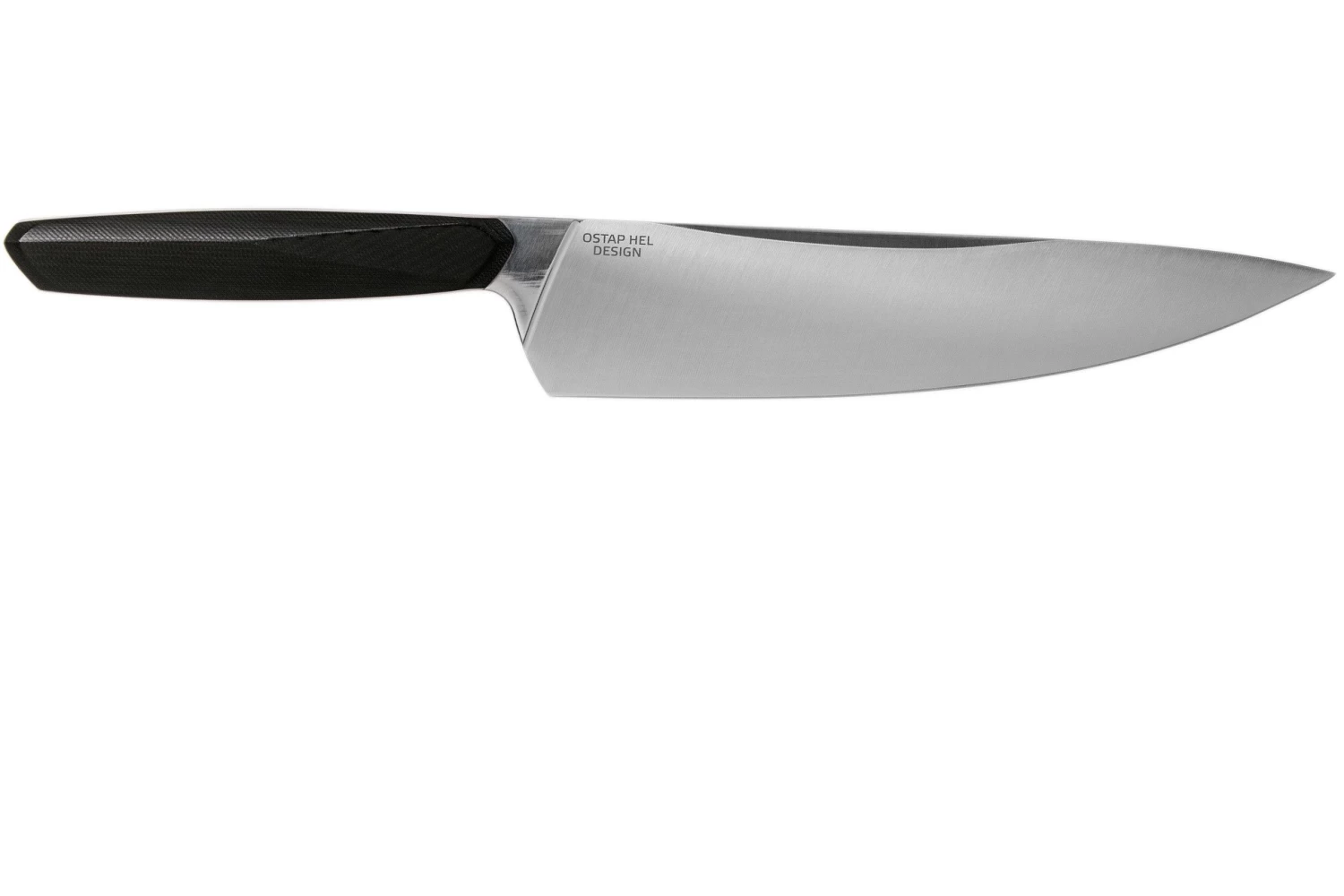 El cuchillo de chef Xin Cutlery XinCore X124 es un cuchillo de chef moderno y elegante. Quien diga que el arte moderno no puede ser funcional, no ha utilizado nunca este cuchillo de chef. La hoja larga es perfecta para cortar todo tipo de verduras, carne y pescado. Este cuchillo cuenta con todas las características prácticas de un cuchillo de chef estándar, pero con un diseño moderno y elegante. El extraordinario diseño viene de la mano del diseñador y cuchillero polaco Ostap Hel. Sus cuchillos son siempre algo futuristas, pero al mismo tiempo también notablemente ergonómicos y prácticos.